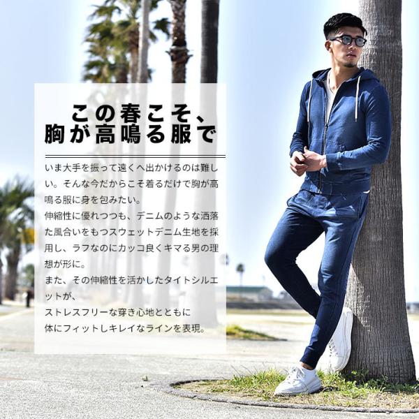 スウェットデニム セットアップ 送料無料 メンズ デニム パーカー 上下 スウェットセットアップ カットデニム ジョガーパンツ 大きいサイズ スウェット パンツ 新商品 Ll サーフ系 ビター系 タイト オシャレ 細身 Bitter系 Xl 秋物 秋 秋服 お洒落